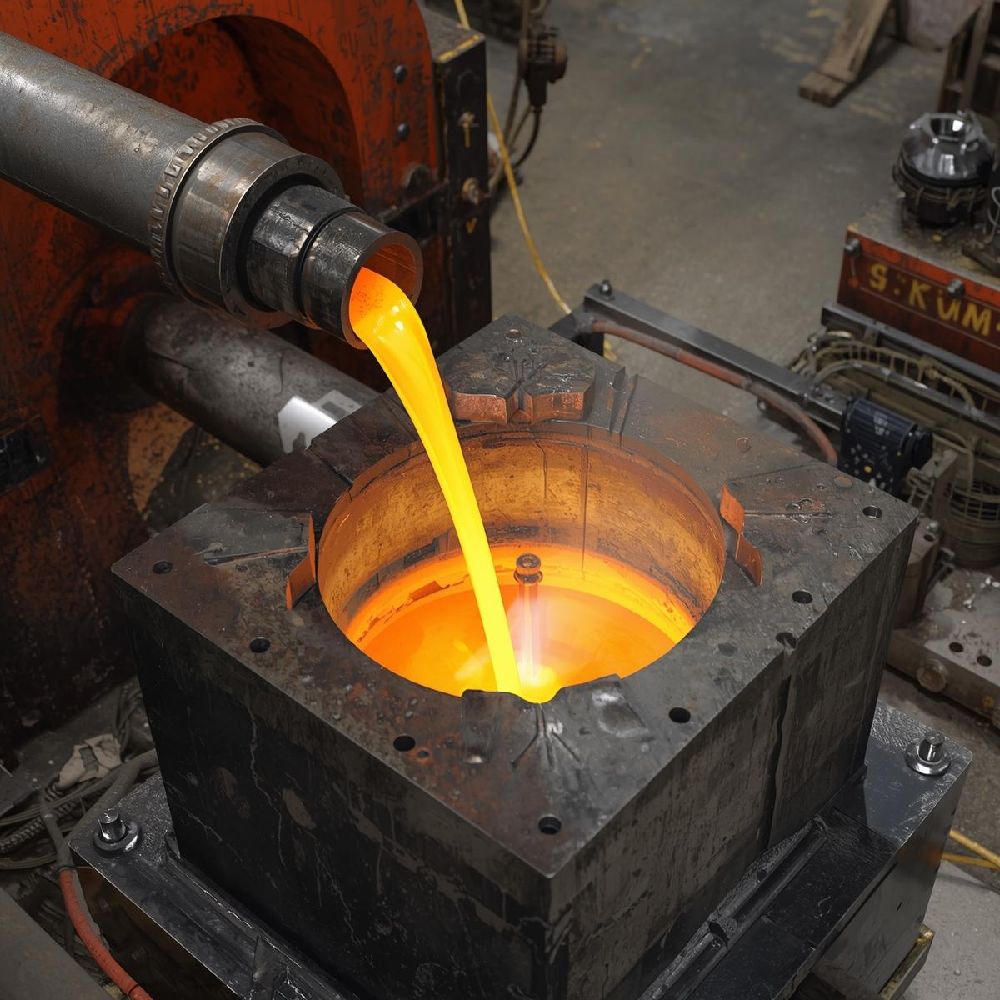 Centrifugal Casting: Uses spinning motion to push molten metal into the mold.